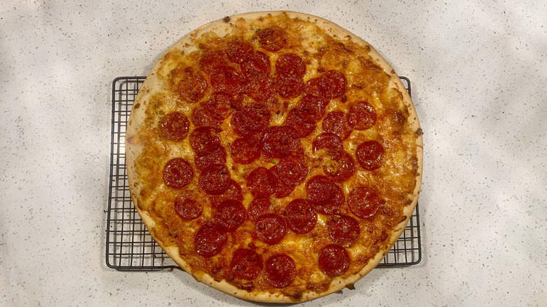 Mama Cozzi’s Pizza Kitchen is a private Aldi brand with a variety of pizza products, like frozen French bread pizza and Texas toast. Among its offerings is a small lineup of refrigerated take-and-bake pizzas in flavors like cheese and Mega Meat. The pepperoni pizza was the only one in stock at my Aldi, so I grabbed it while I could.