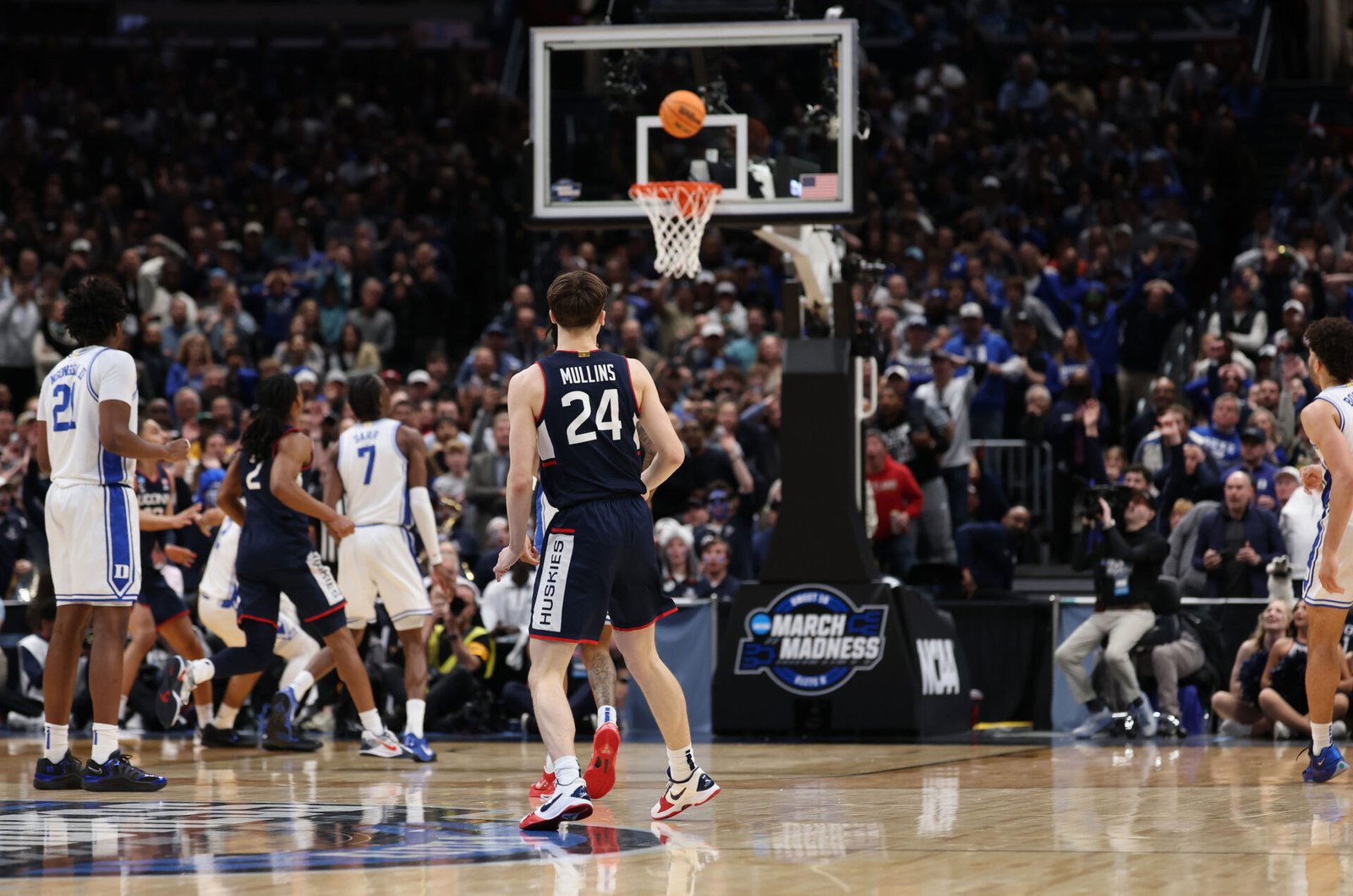 With just four seconds remaining, Duke didn’t need to cross half-court, but Boozer attempted a pass over a UConn defender. Karaban intercepted the pass and passed it to Braylon Mullins, who drained a three-pointer from the logo to give UConn the 73-72 lead. It was a heart-wrenching finish for Duke, who fell short despite their efforts.